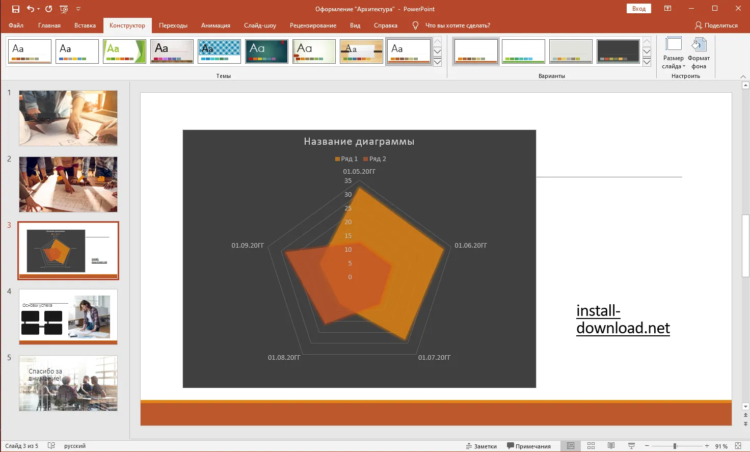 Предлагаемые для оформления слайдов темы, помогают сократить время при создании презентации. Это макеты слайдов с разметкой листов презентации: титульный лист, лист с заголовком и текстом, лист с заголовком и колонками. В них уже настроен шрифт и цветовое решение. Но их всегда можно изменить по своему усмотрению.
